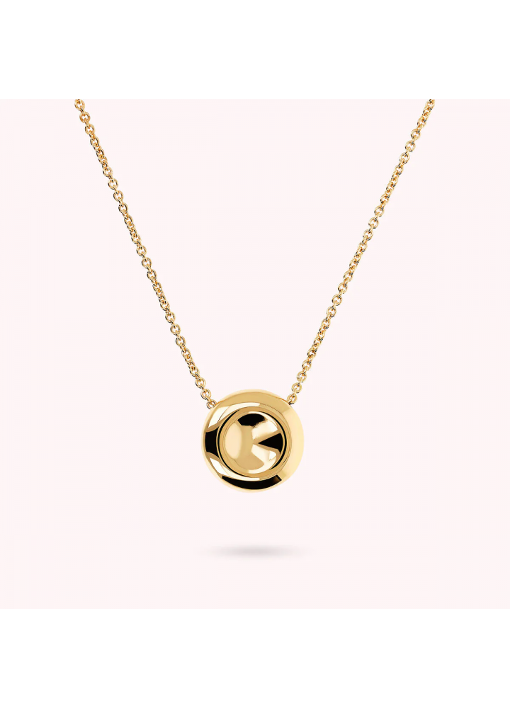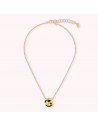 Collana Bronzallure realizzata in lega Golden Rosé, placcata Oro giallo 18kt, con catena rolo impreziosita da un pendente a bottone lucido (18 mm). Lunghezza 38+4 cm di estensione. Chiusura a moschettone.