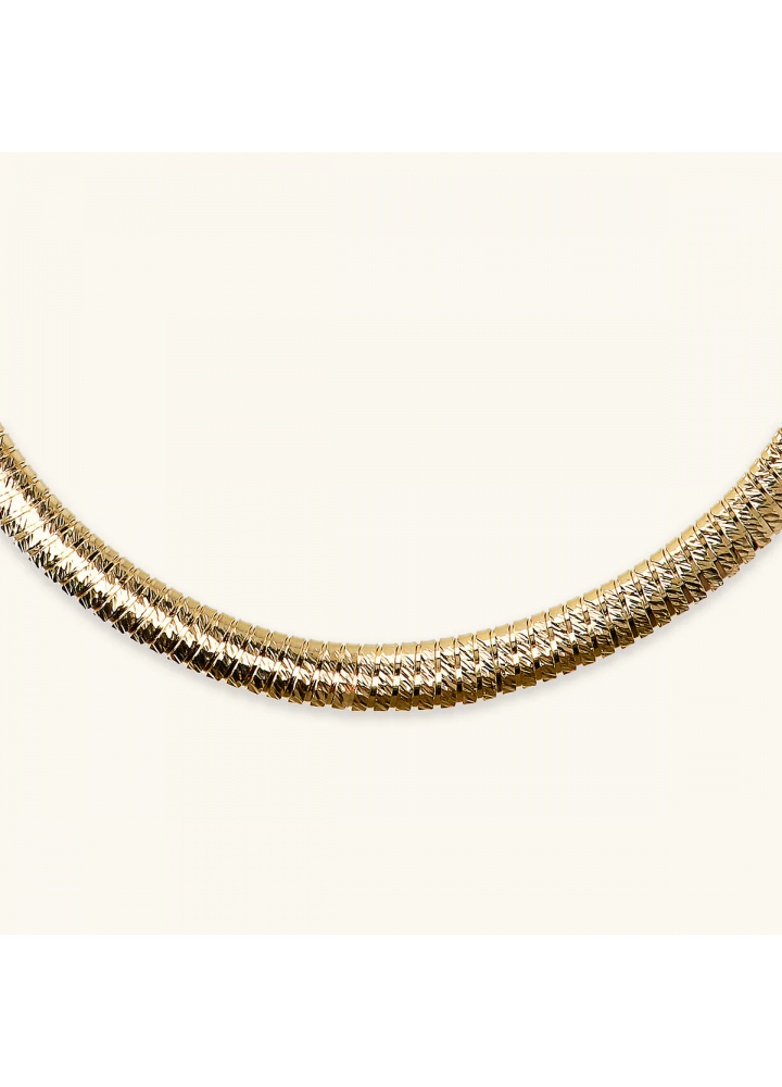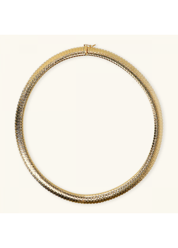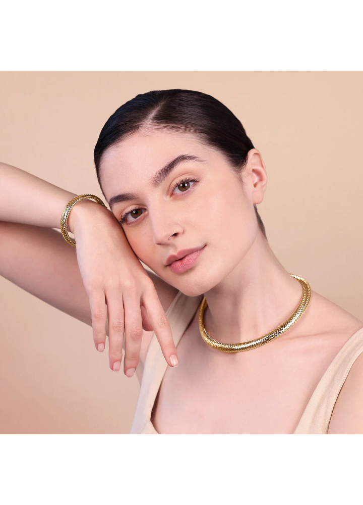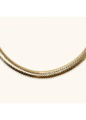 Collana girocollo Etrusca Gioielli realizzata in lega Golden, placcata Oro giallo 18kt, con maglia tubogas diamantata. Chiusura a scomparsa.