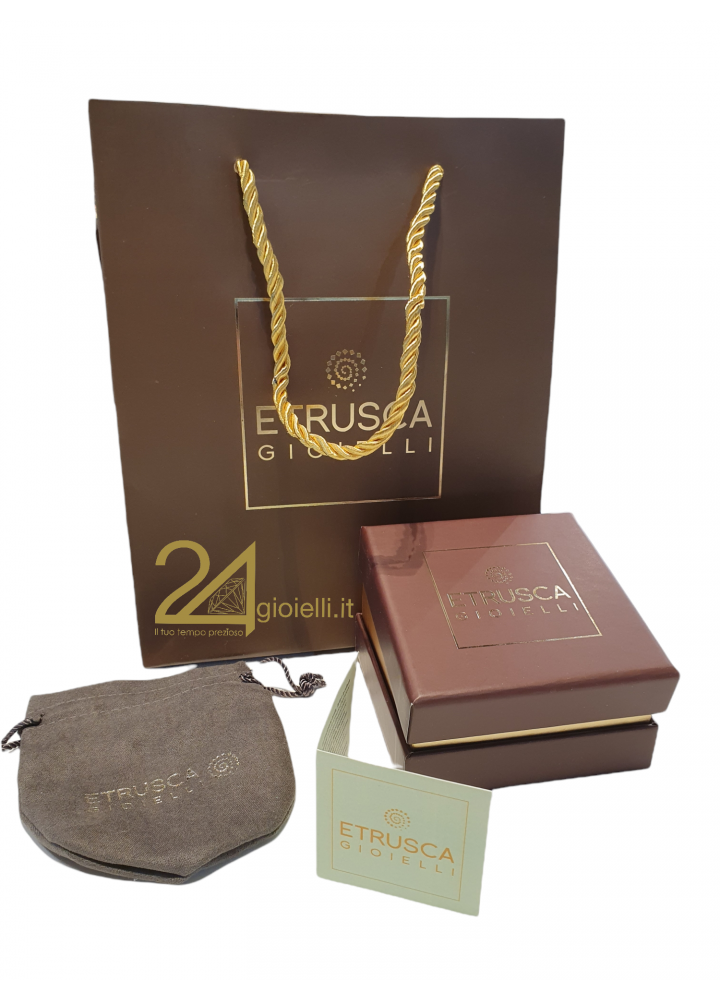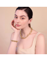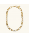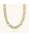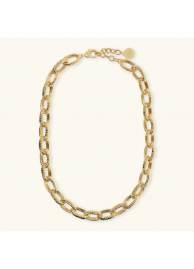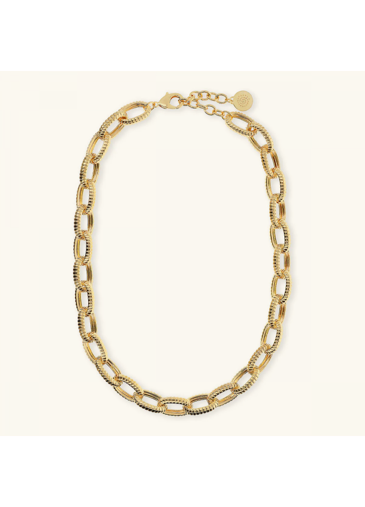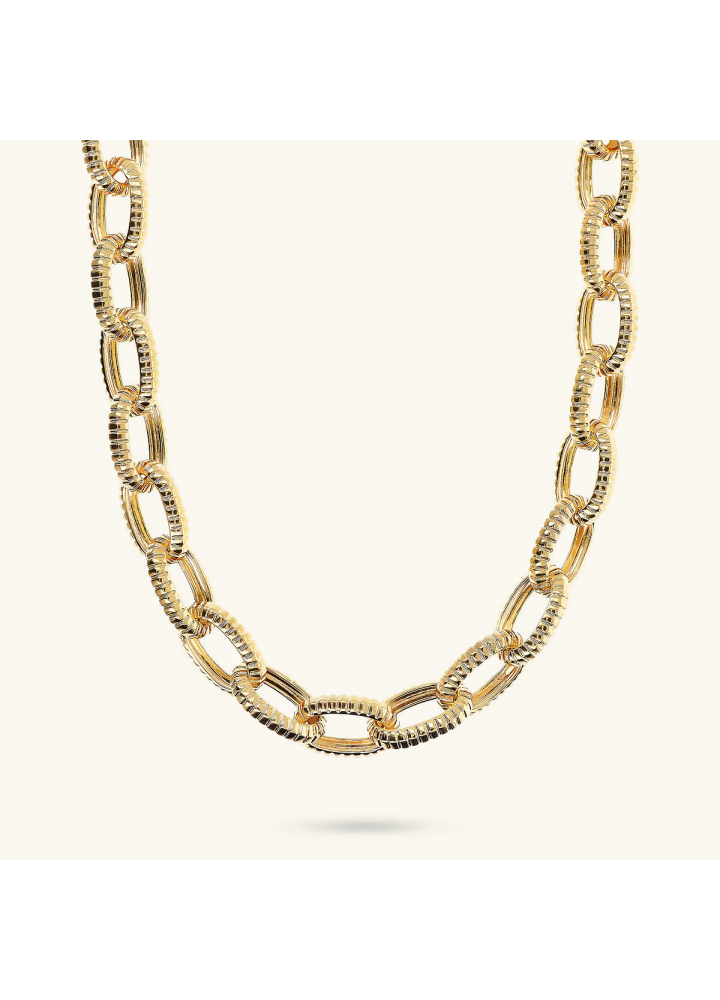 Collana girocollo Etrusca Gioielli realizzata in lega Golden, placcata Oro giallo 18kt, con maglie ovali dalla texture rigata. Lunghezza 45+5 cm di estensione. Chiusura a moschettone.