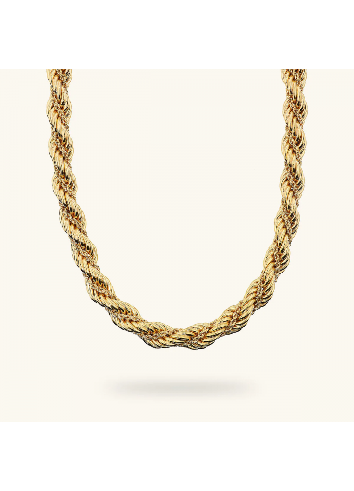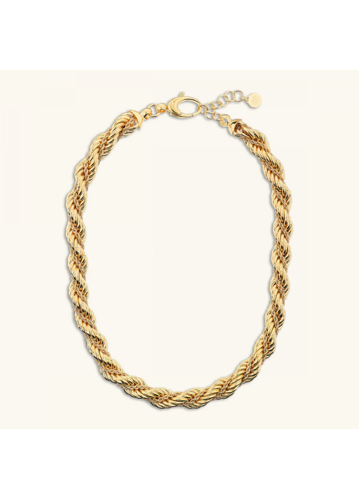 Collana girocollo Etrusca Gioielli realizzata in lega Golden, placcata Oro giallo 18kt, con doppia catena corda. Lunghezza 42+3 cm di estensione. Chiusura a moschettone. Spessore catena 7 mm.
