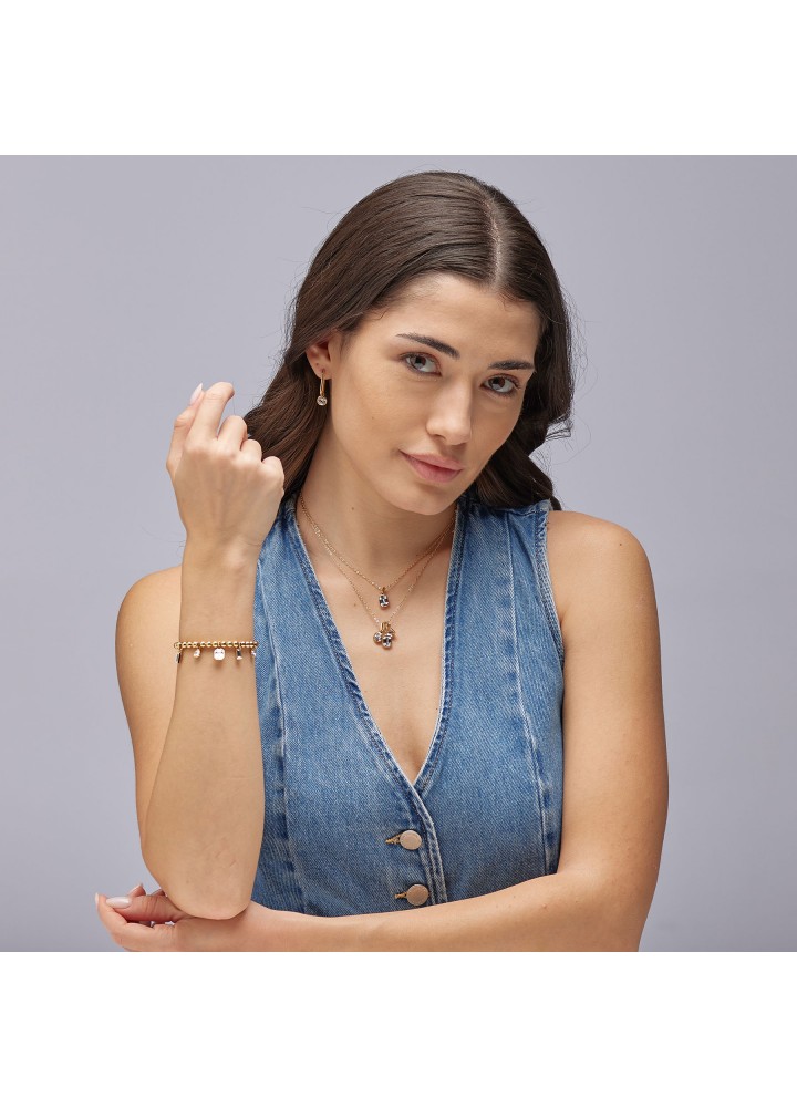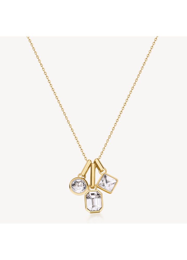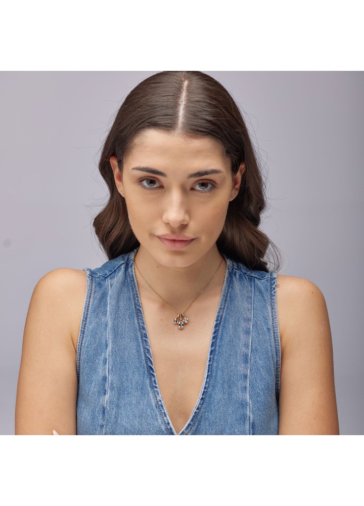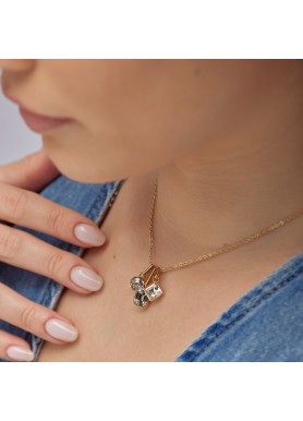 Collana girocollo in acciaio 316L, finitura pvd oro 14K e pendenti con cristalli.
