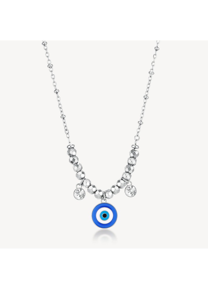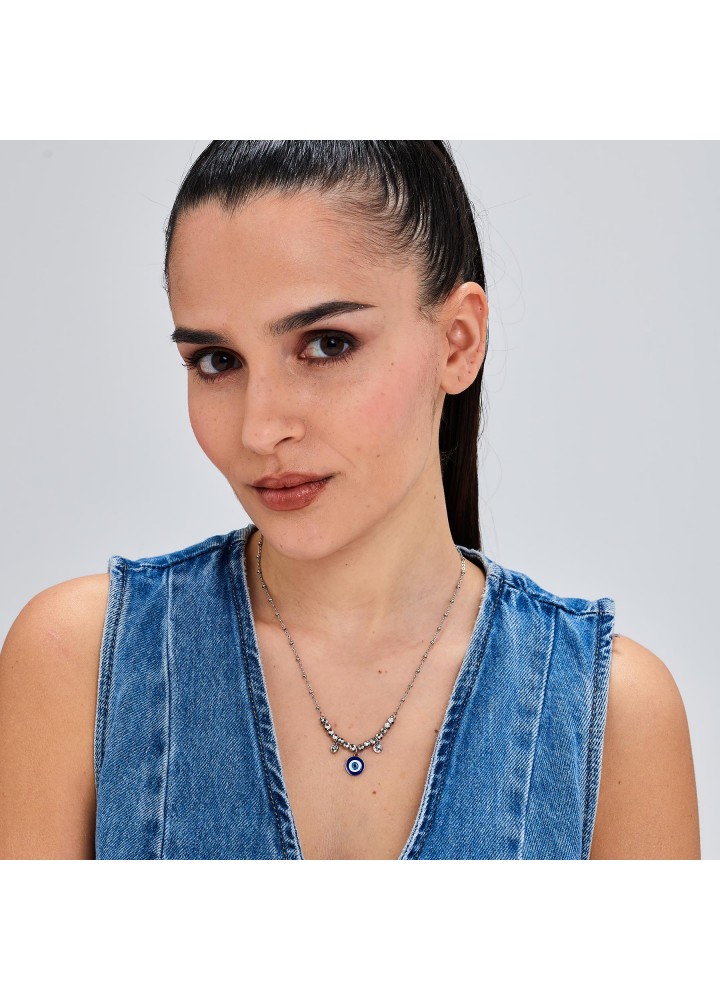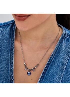 Collana girocollo in acciaio 316L e pendenti con occhio di Nazar e cristalli.