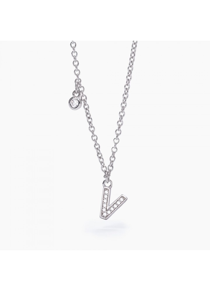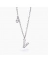 Girocollo in argento con catena forzatina e ciondolo a forma di lettera V con zirconi.