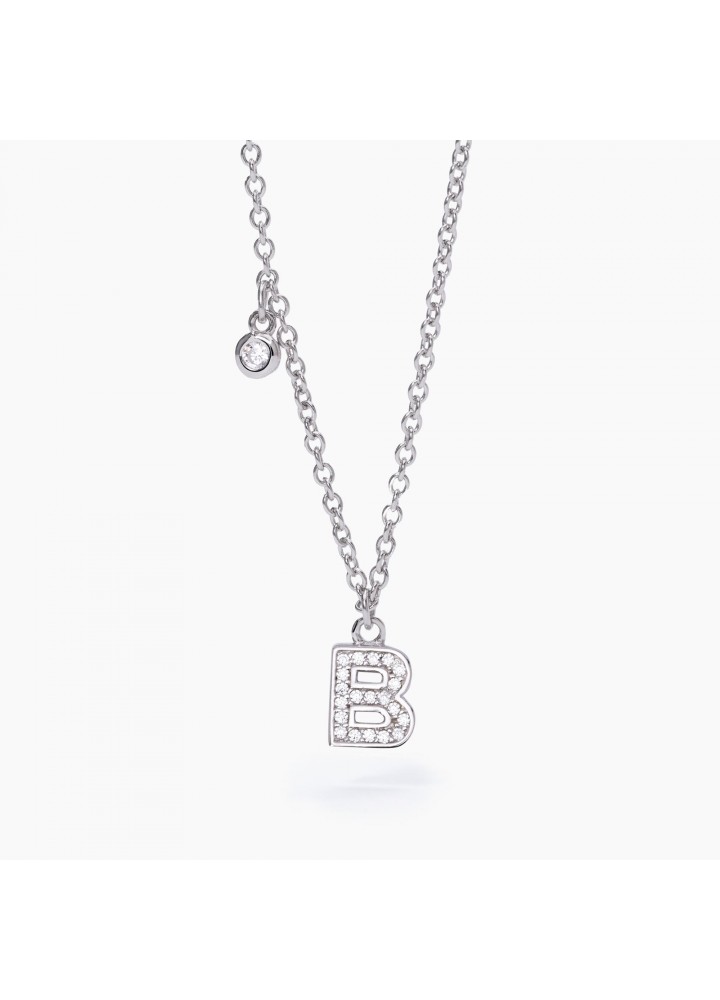 Girocollo in argento con catena forzatina e ciondolo a forma di lettera B con zirconi.