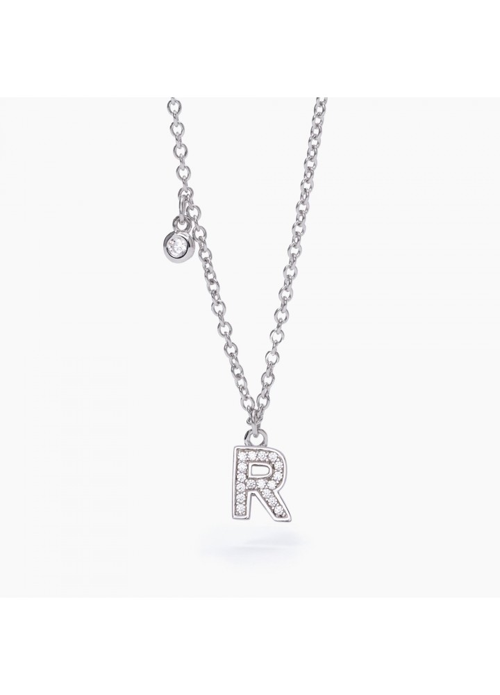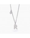 Girocollo in argento con catena forzatina e ciondolo a forma di lettera R con zirconi.