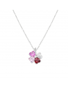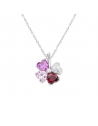 Collana in argento 925 con pendente Quadricuore composto da zirconi bianchi e zirconi taglio cuore rosso rubino, rosa e fucsia. Un Quadricuore romantico e dolce, per chi ama vedere la vita in rosa, o per dichiarare Amore.