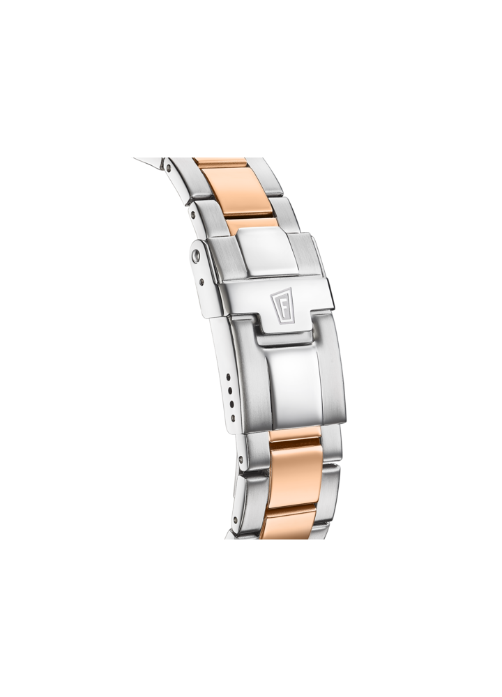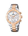 Orologio Festina da donna della collezione Boyfriend con cassa in acciaio inossidabile 316L e vetro minéral, quadrante madreperla e cinturino bicolore grigio argento e rosa. Movimento al quarzo analogico. Funzione di movimento Cronografo. Resistenza all'acqua di 10 ATM. Diametro della cassa 39 mm. Dimensione del cinturino 18.8 mm. Referenza F20605/1
