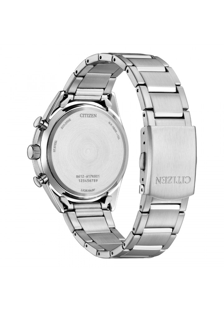 Orologio Uomo Citizen Eco Drive Cronografo in Acciaio. Cassa e Cinturino in Acciaio con quadrante bianco.