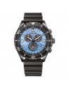 Orologio Acciaio Cronografo Uomo Citizen Eco Drive, cassa in acciaio Nero e cinturino in Silicone, quadrante azzurro.