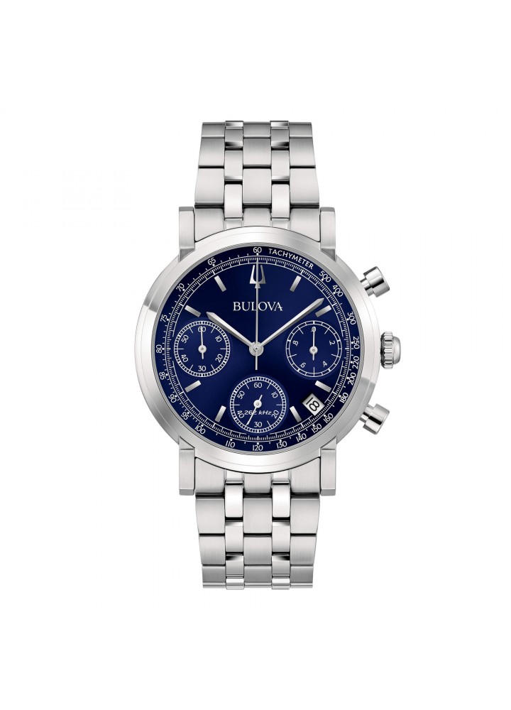 Orologio Bulova Uomo Cronografo High Precision 262kHz cinturinato acciaio con chiusura a pulsanti, quadrante blue