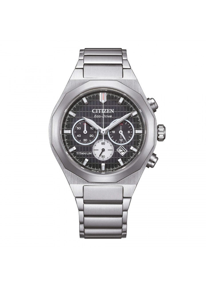 Cronografo a 1/5 di sec. Cassa e bracciale in Super Titanio (Titanio grado 2 con lavorazione Duratect). Vetro zaffiro con trattamento anti-riflesso. WR 10 bar.