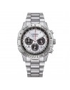 Cronografo a 60 minuti. Cassa in acciaio. Ghiera girevole bidirezionale di tipo aereonautico. Bracciale in acciaio con chiusura di sicurezza. Vetro zaffiro con trattamento anti-riflesso. Antimagnetico 4800 A/m. WR 20 bar.