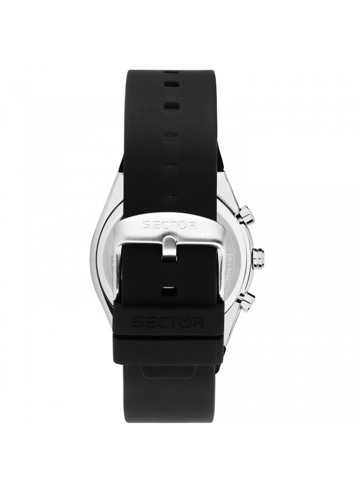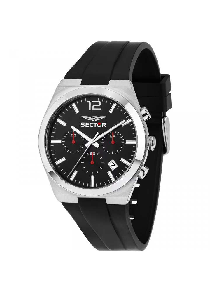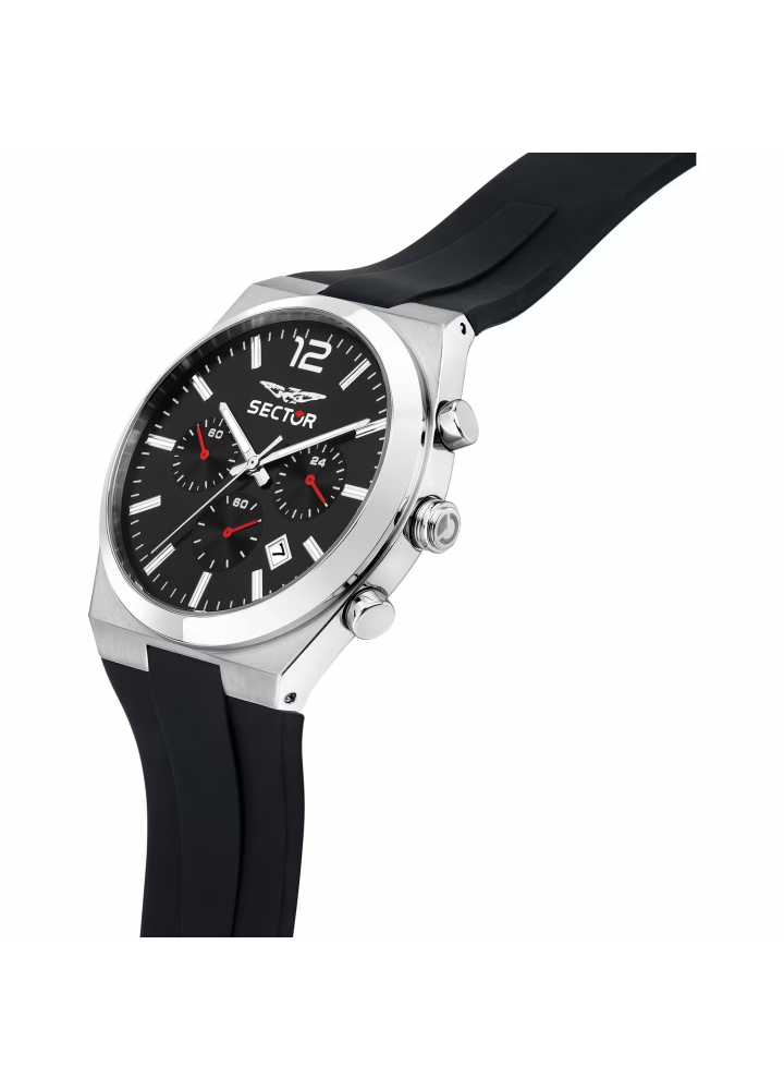 Orologio Cronografo della collezione C300 di sector Uomo, cassa in acciaio, cinturino in silicone nero e quadrante nero.