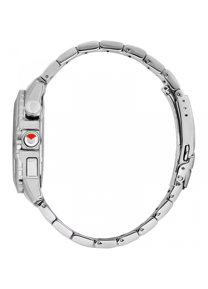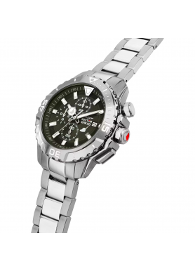 Materiale e finitura cassa: Acciaio, Tessuto, Misura cassa: 43.00mm, Spessore cassa: 10.89mm, Colore cassa: Silver, Vetro: Vetro minerale, Materiale cinturino: Acciaio, Colore cinturino: Silver, Chiusura: Fibbia diver c/pulsanti e blocco di sicurezza, Movimento: Quarzo, Water resistant: 10 atm