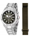 Orologio della collezione Legend dedicato agli Alpini, cassa e cinturino in acciaio, quadrante verde con logo alpini e incisione dedicata sul fondello, doppio cinturino in tessuto tecnico di colore verde.