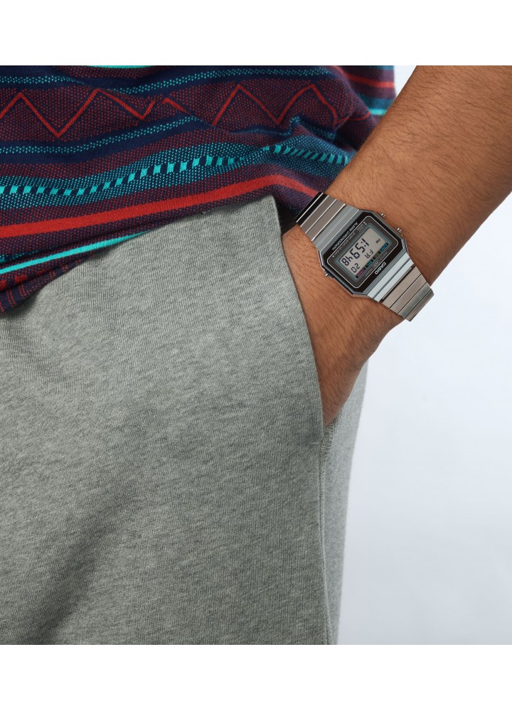 Orologio Casio Vintage Unisex. Cassa e Cinturino in acciaio. Digitale al quarzo con illuminazione, batteria long life, water resistent 5 bar.