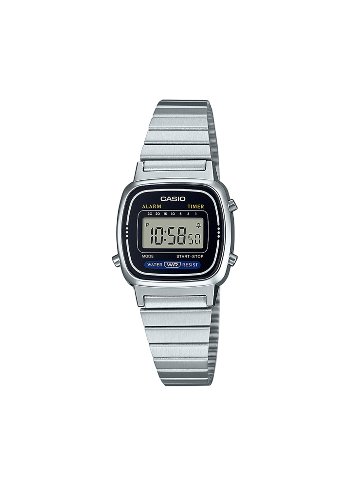 Silver e nero - una combinazione che non solo è sinonimo di buon gusto ma che si abbina anche a diversi e numerosi outfit. Questo orologio CASIO DONNA sa farsi notare, non da ultimo grazie a materiali come la cassa in resina e il cinturino regolabile in acciaio inox. Questo orologio va tenuto al polso, non in tasca.