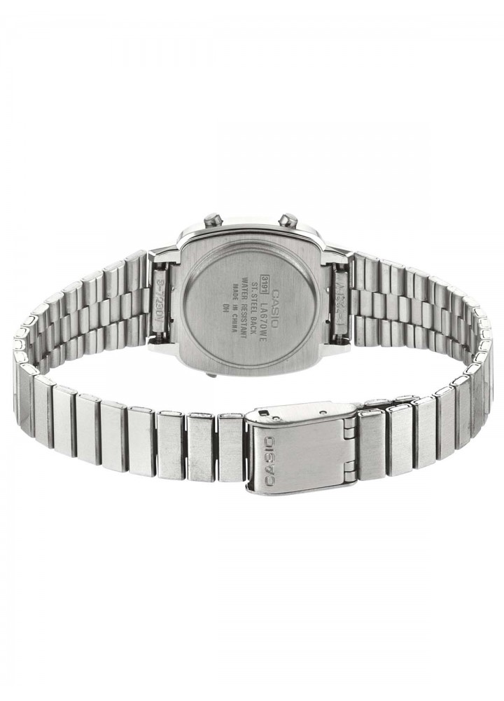 Silver e nero - una combinazione che non solo è sinonimo di buon gusto ma che si abbina anche a diversi e numerosi outfit. Questo orologio CASIO DONNA sa farsi notare, non da ultimo grazie a materiali come la cassa in resina e il cinturino regolabile in acciaio inox. Questo orologio va tenuto al polso, non in tasca.