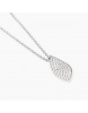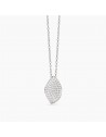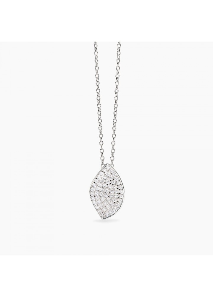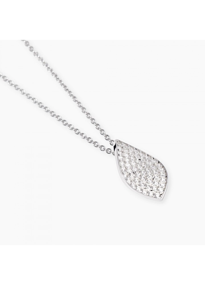 Girocollo in argento rodiato con catena rolò e foglia in pavè di zirconi bianchi.