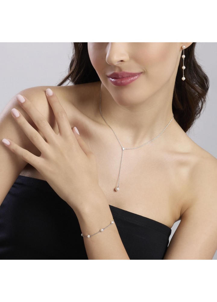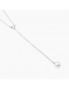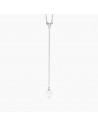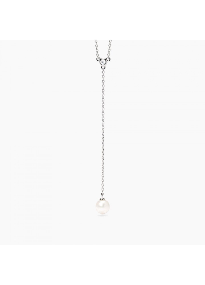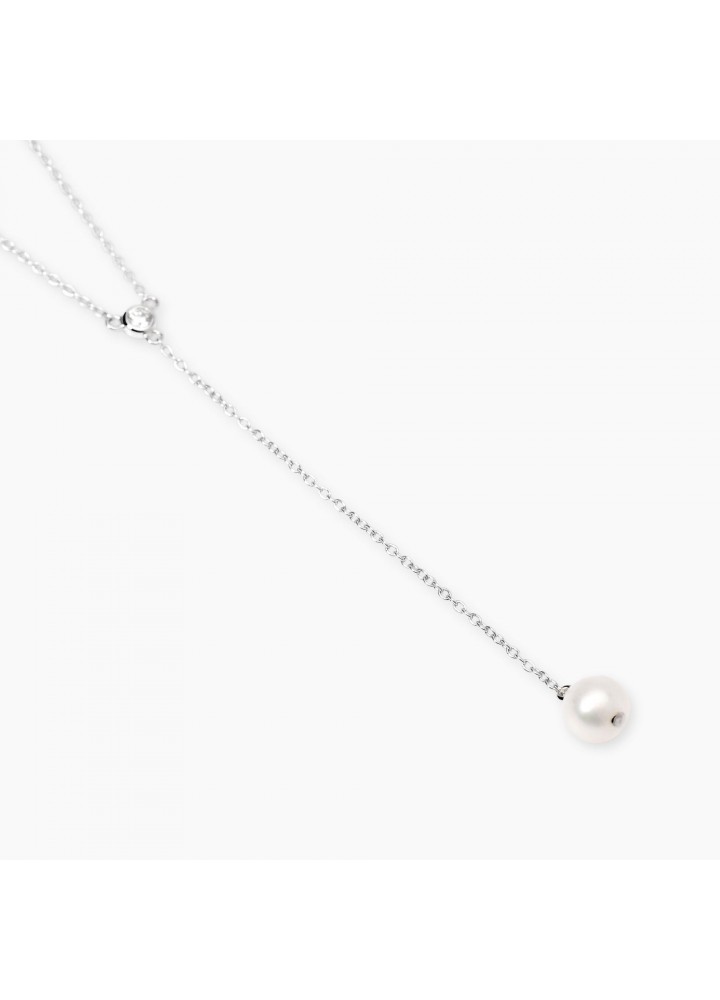 Girocollo regolabile in argento rodiato con catena rolò e pendente con zircone e perla coltivata.