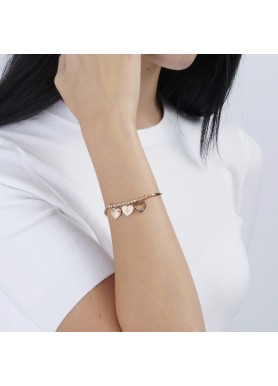 Bracciale semirigido in acciaio 316L e pvd oro rosa con pendenti a forma di cuore con cristalli Swarovski®crystal.