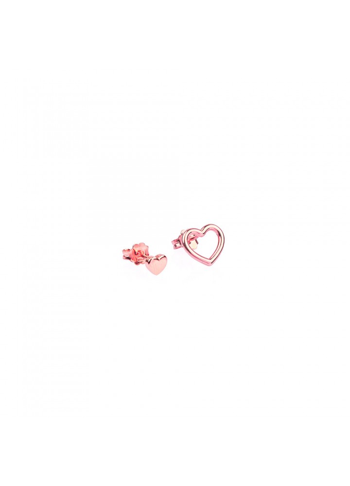 Orecchini mix di Cuori, placcati oro rosa. Dimensione: 8 mm/6 mm. Argento 925 Made in Italy.