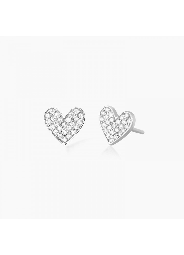 Orecchini a lobo in argento a cuore in pavé di zirconi.