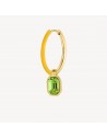 Orecchino singolo a cerchio in acciaio 316L, finitura color oro con smalto giallo e cristallo peridot.