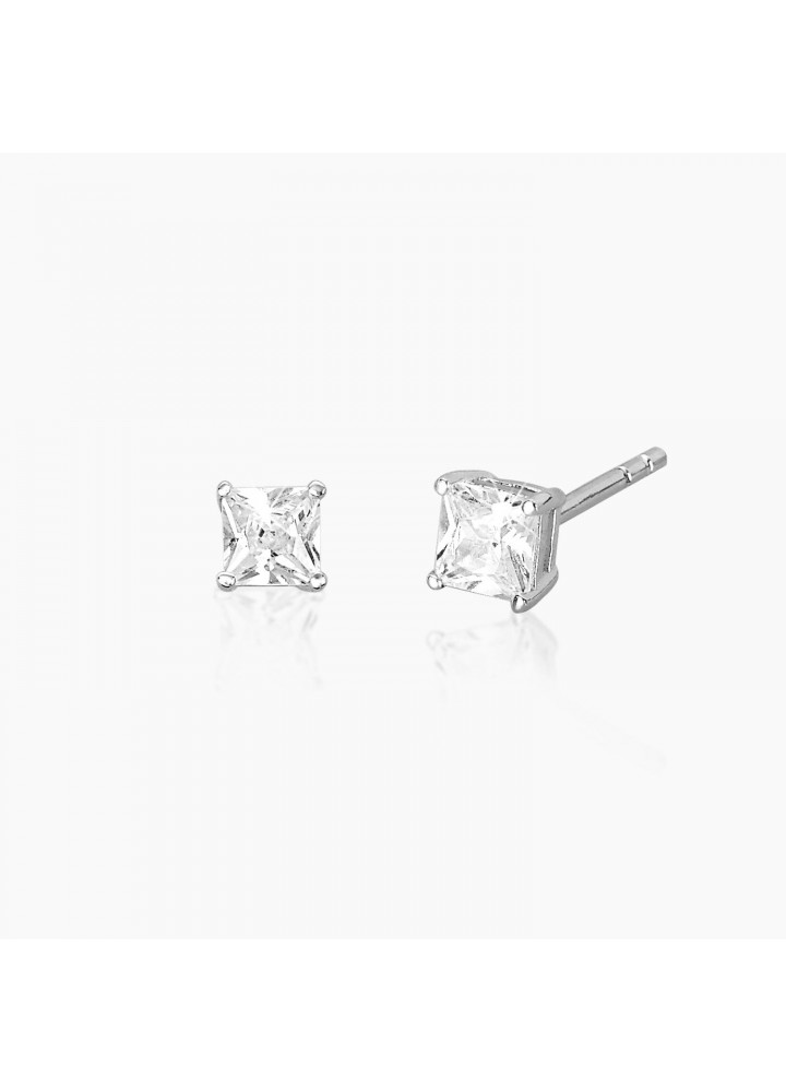 Orecchini a lobo in argento con punto luce in zircone quadrato.