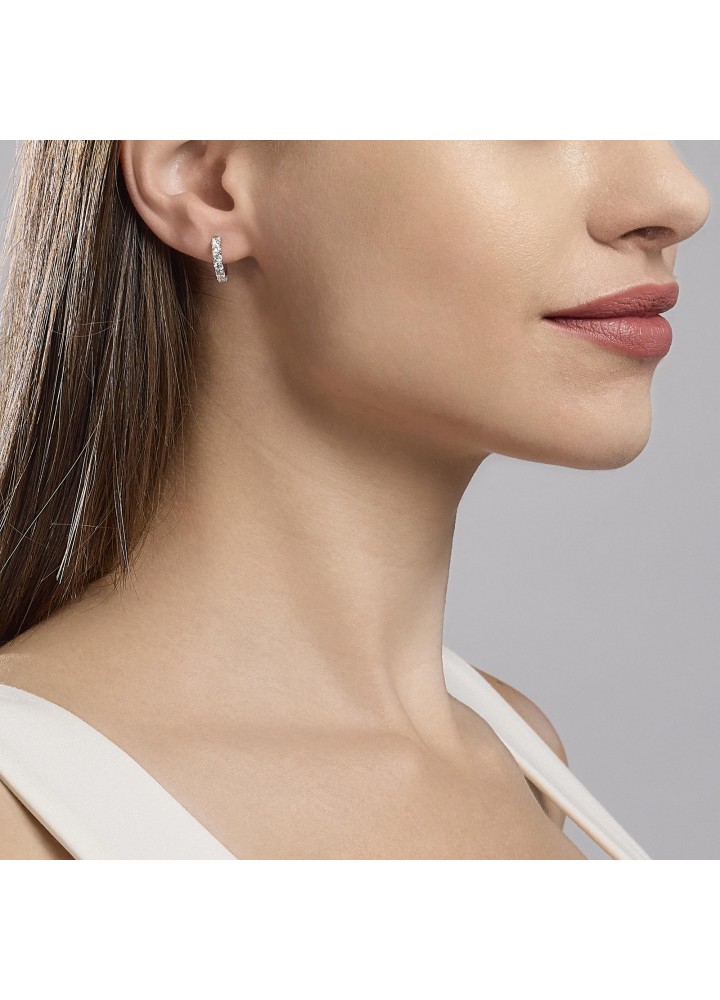 Orecchini a cerchio in argento con zirconi bianchi.