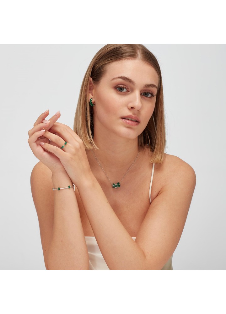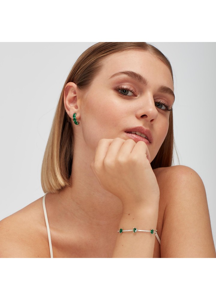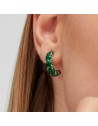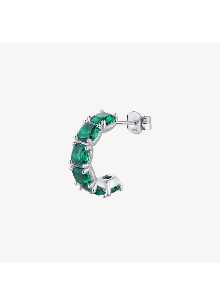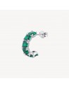 Orecchino singolo a cerchietto in argento rodiato 925‰ con cushion cubic zirconia colore emerald.