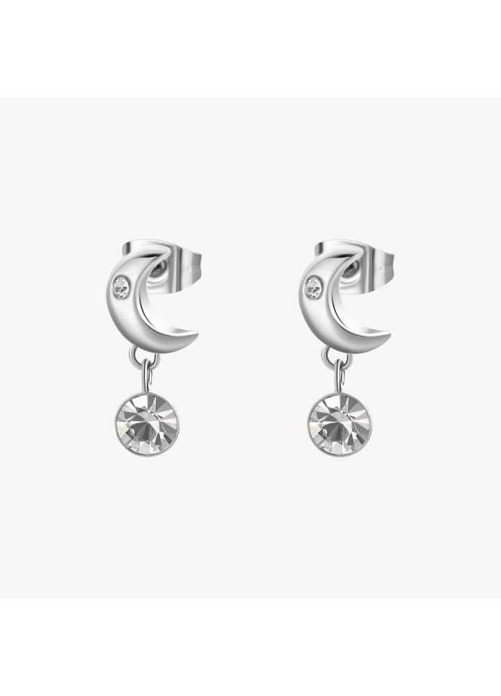 Orecchini in acciaio 316L a forma di mezza luna e cristalli.