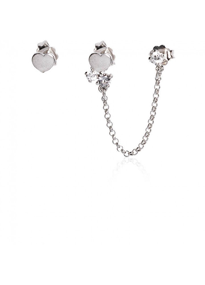 Orecchino Jack Materiale Argento 925 con cuori e Zirconi fume' per doppio buco Garanzia 24 Mesi