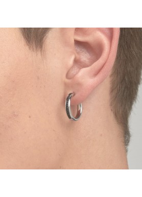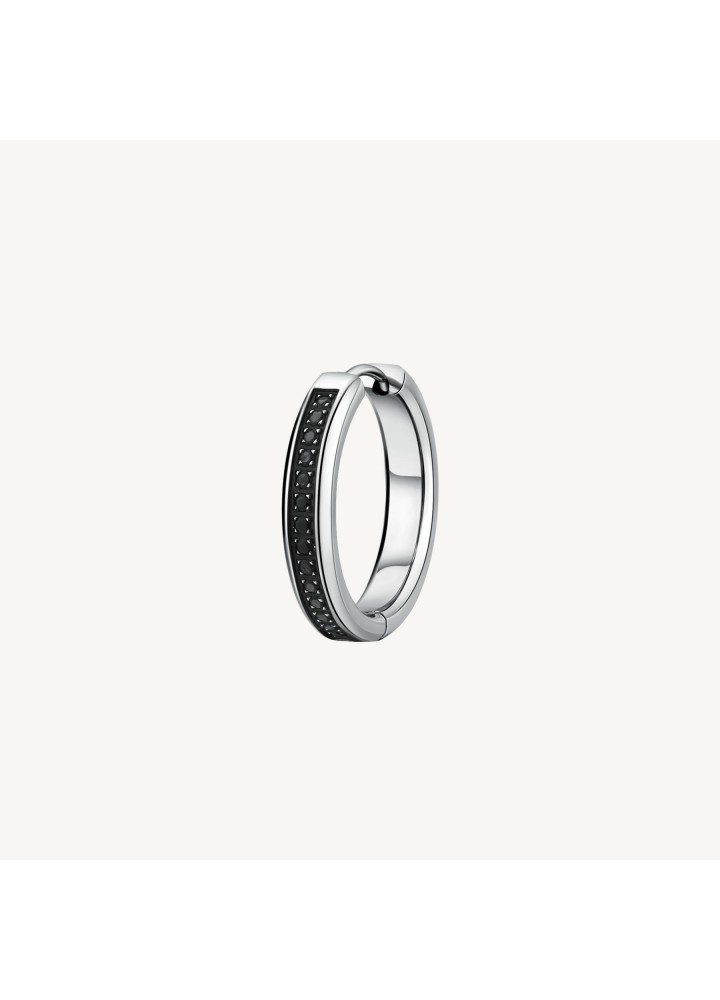 Orecchino singolo a cerchio in acciaio 316L e zirconi neri.