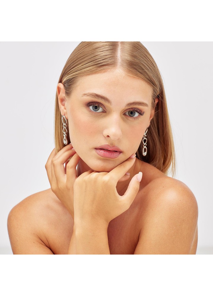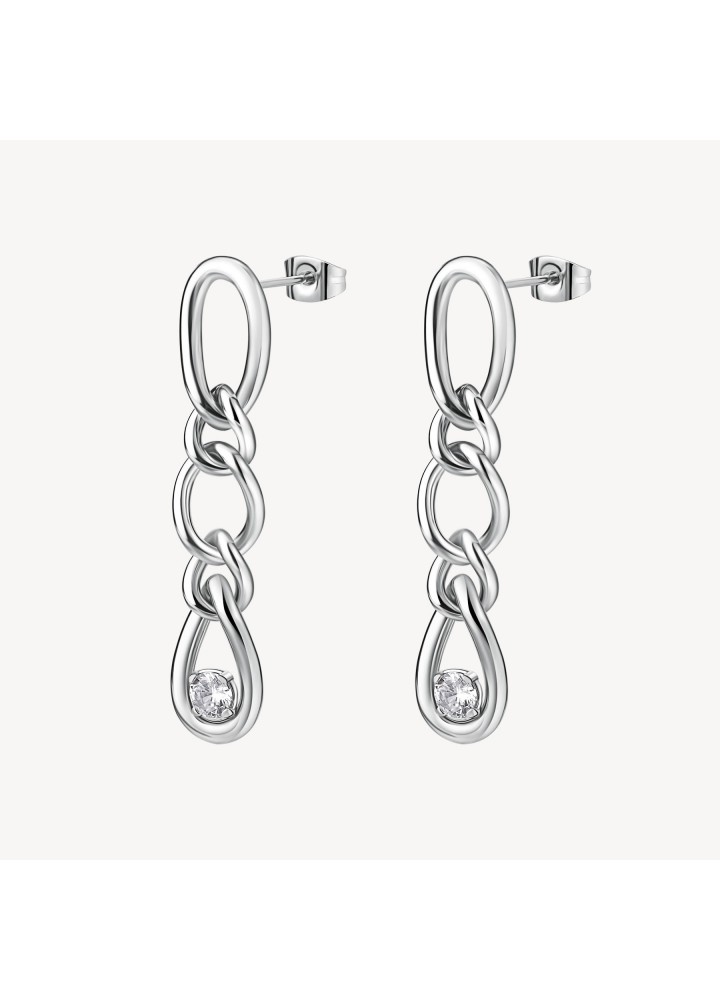 Orecchini pendenti in acciaio 316L a forma di catena con cubic zirconia.