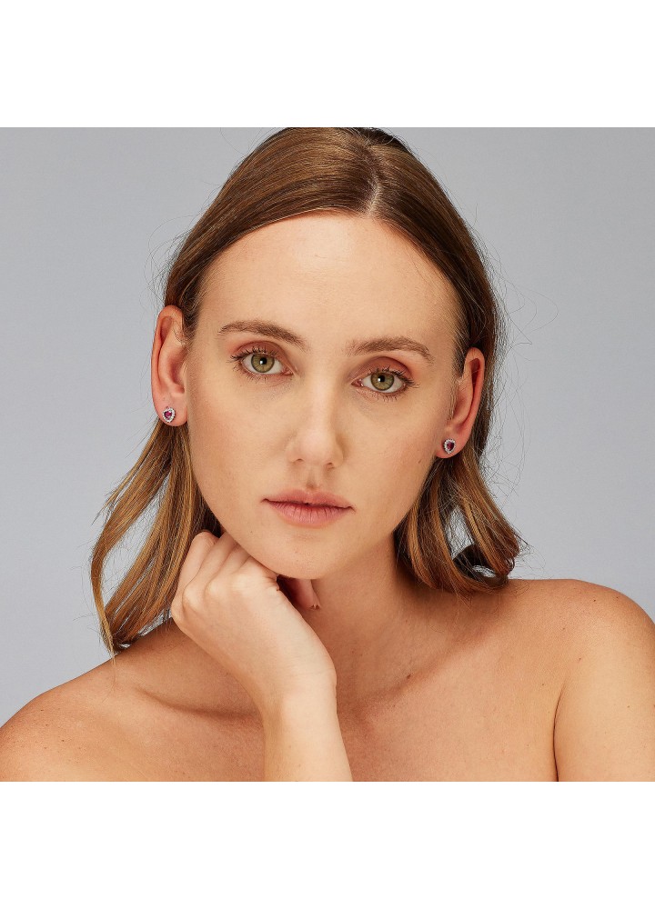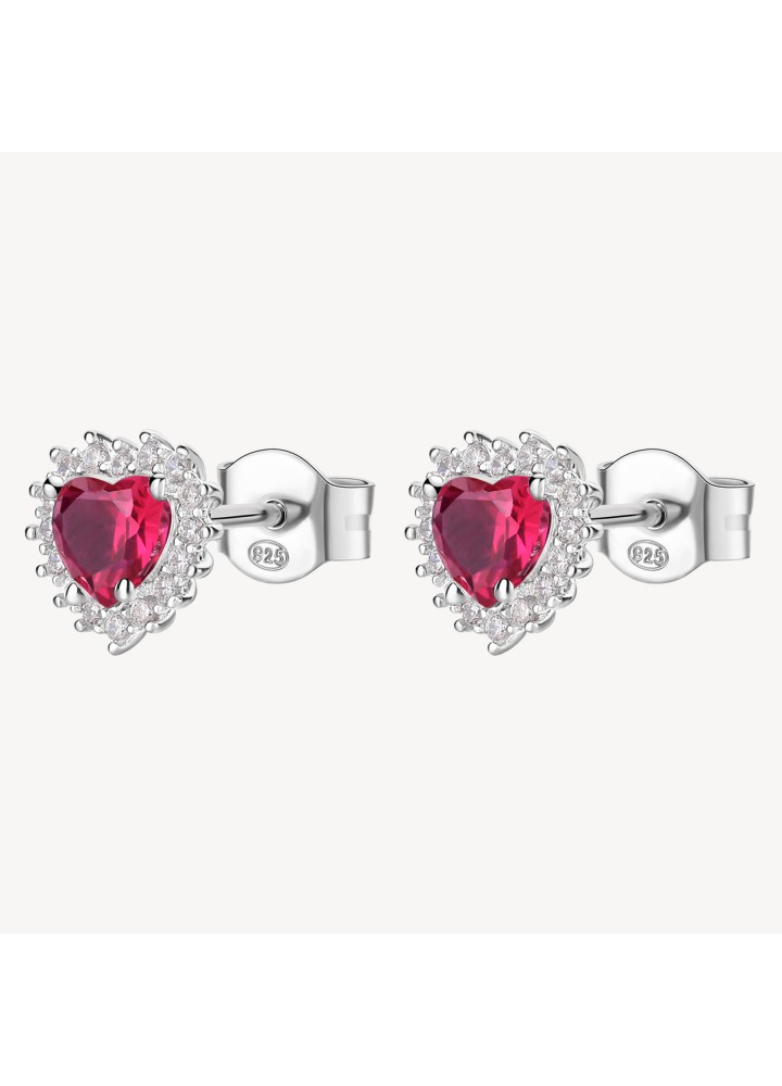 Orecchini Kate a lobo a forma di cuore in argento rodiato 925‰ con cubic zirconia chiari e cubic zirconia colore ruby