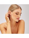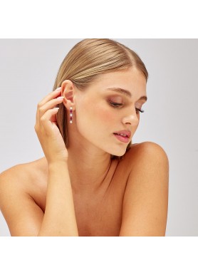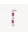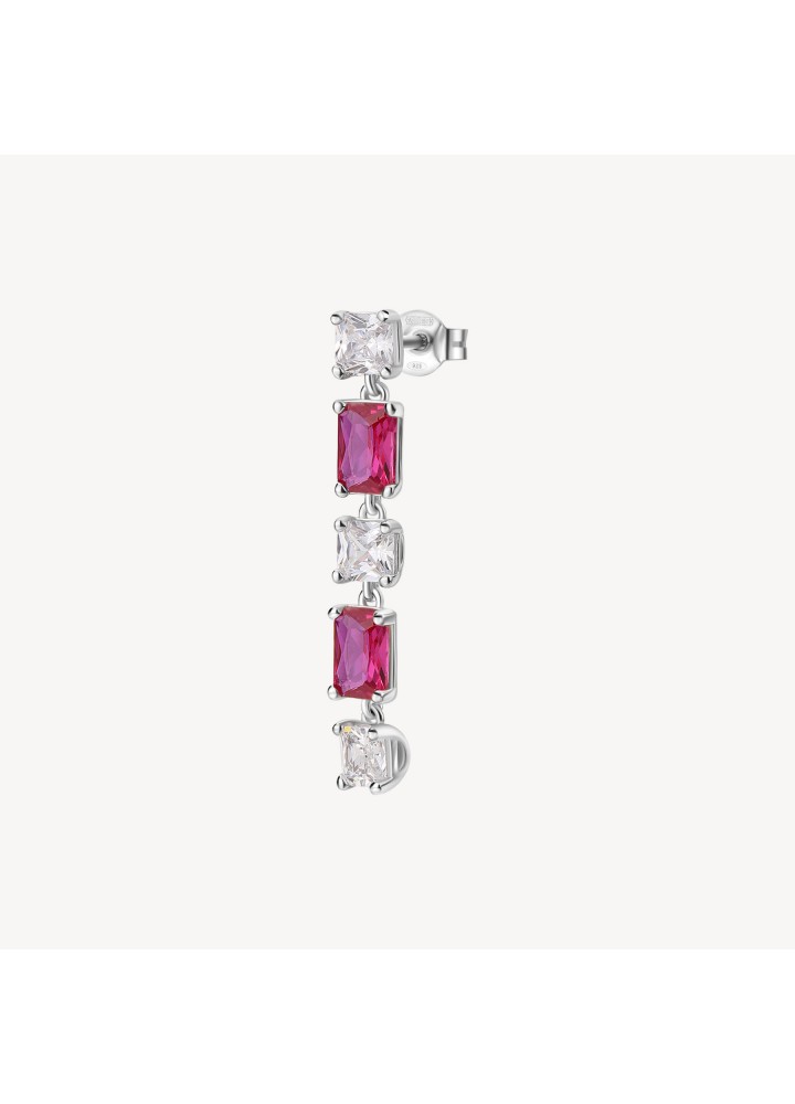 Orecchino singolo pendente in argento rodiato 925‰ con cushion cubic zirconia chiari e baguette cubic zirconia colore ruby.