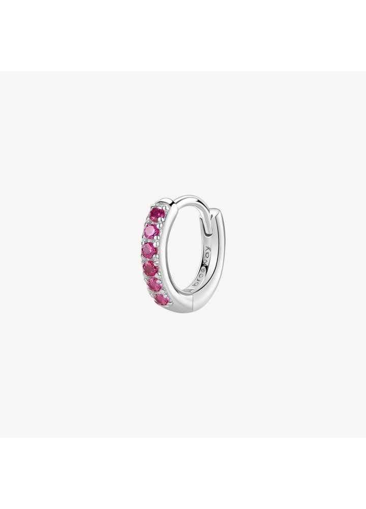 Orecchino singolo a cerchietto in argento rodiato 925‰ con cubic zirconia colore ruby.