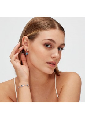 Orecchino singolo pendente in argento rodiato 925‰ con baguette cubic zirconia colore sapphire.