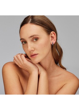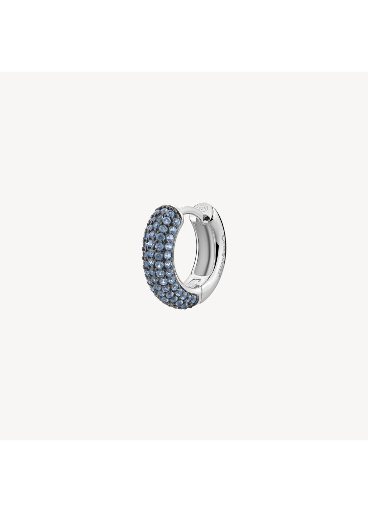 Orecchino singolo a cerchio in argento rodiato 925‰ con galvanica colore rutenio e cubic zirconia colore light sapphire.