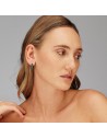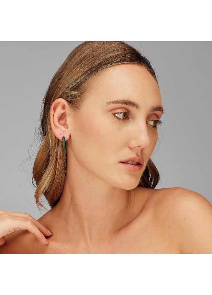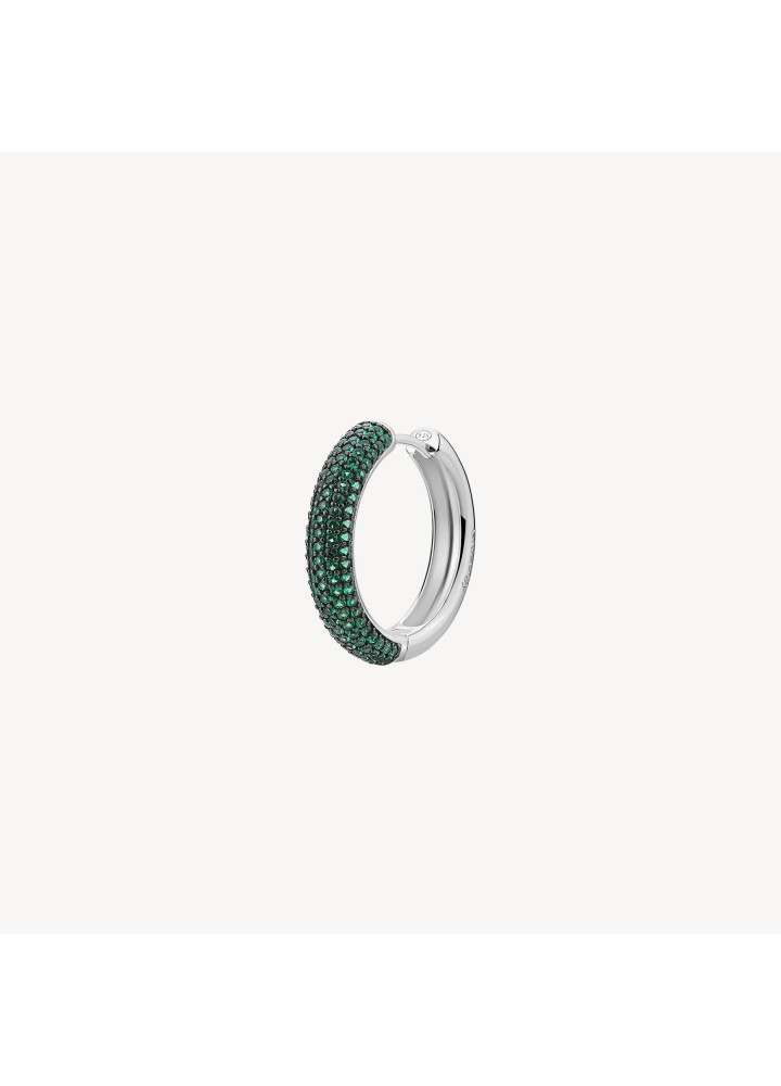Orecchino singolo a cerchio in argento rodiato 925‰ con galvanica colore rutenio e cubic zirconia colore emerald.