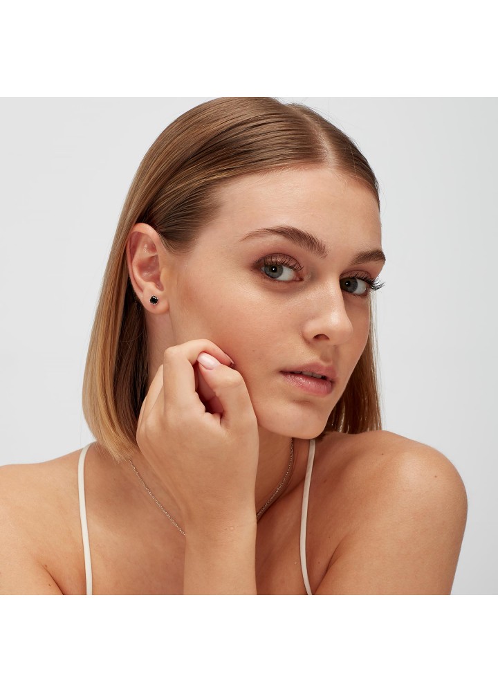 Orecchino singolo a lobo in argento rodiato 925‰ con cushion cubic zirconia neri.