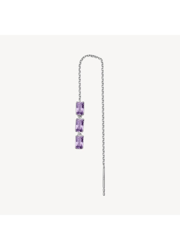 Orecchino singolo saliscendi in argento rodiato 925‰ con baguette cubic zirconia colore amethyst.