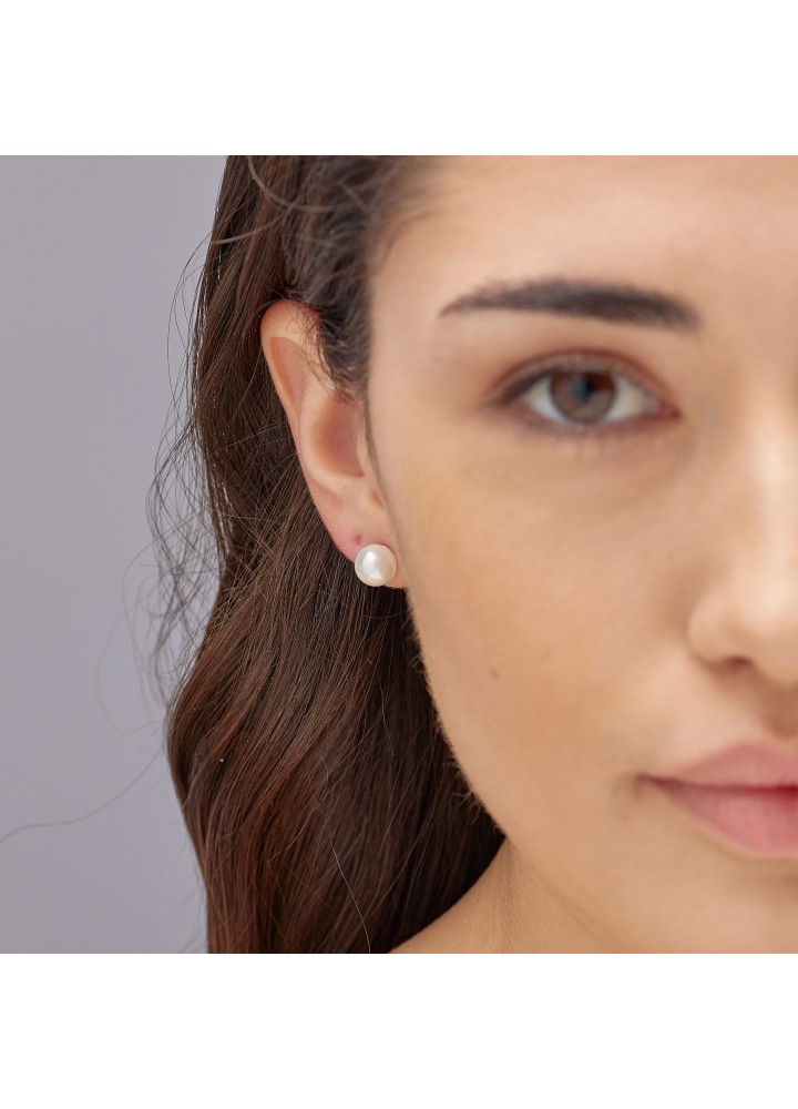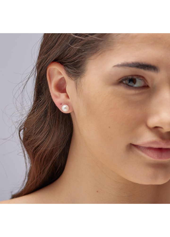 Orecchini a lobo in argento rodiato 925‰ con perla.