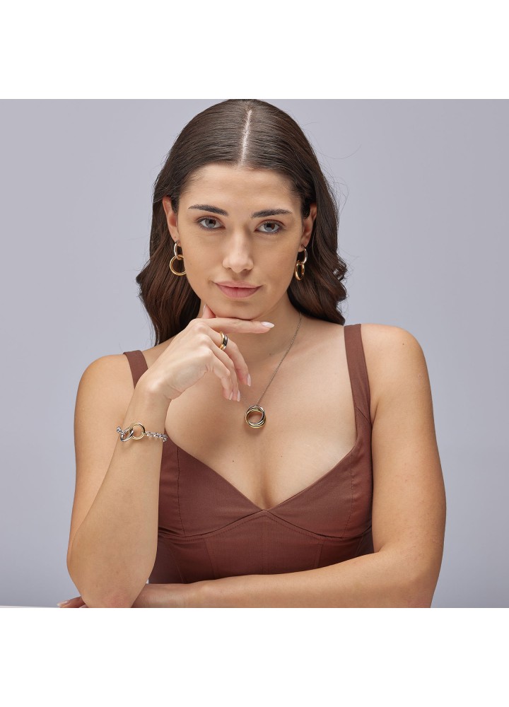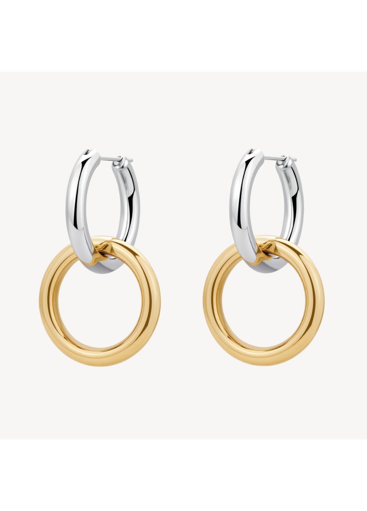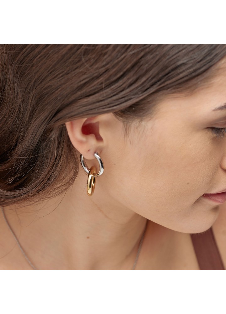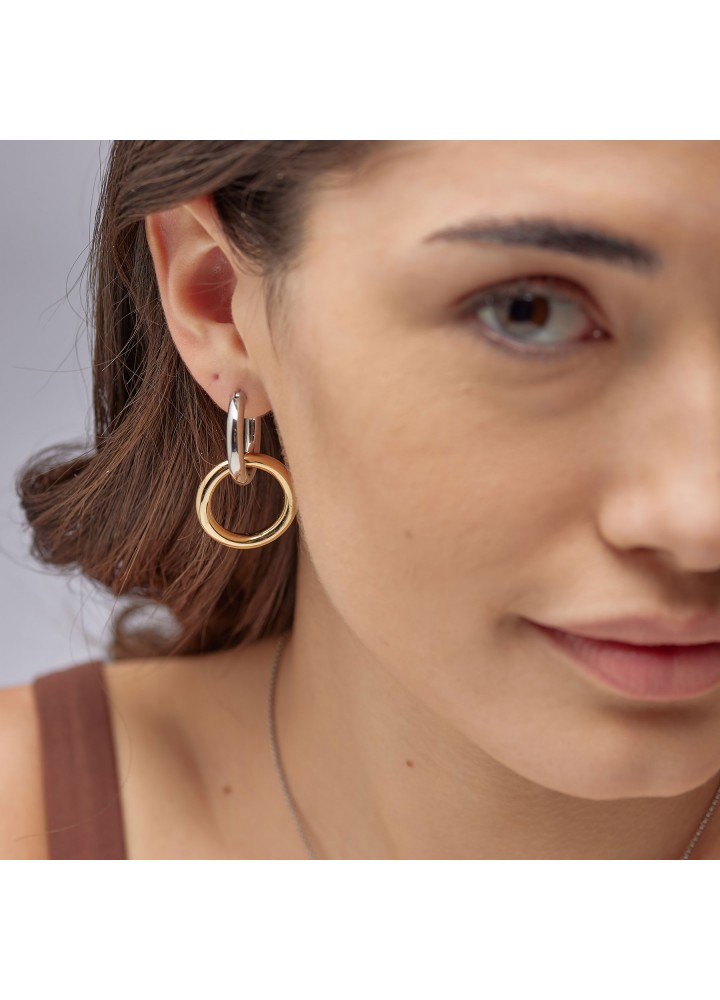 Orecchini a cerchio pendenti in acciaio 316L e finitura pvd oro 14K.