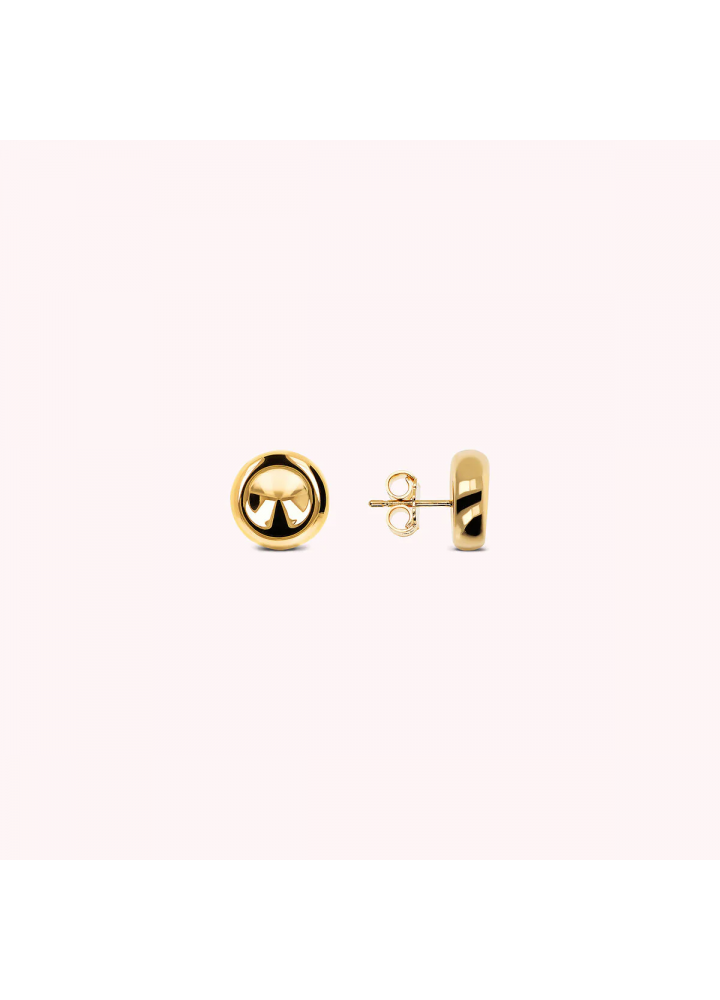 Orecchini a lobo Bronzallure realizzati in lega Golden Rosé, placcata Oro giallo 18kt, dal design a bottone (12 mm). Finitura lucida. Chiusura a perno e farfalla.