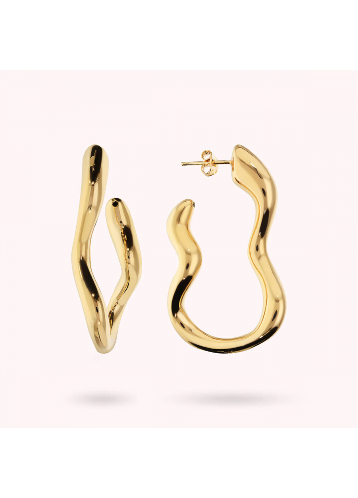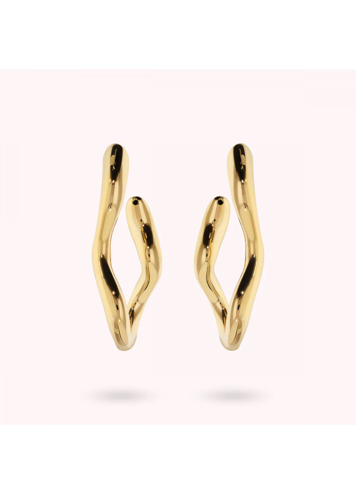 Orecchini pendenti Bronzallure realizzati in lega Golden Rosé, placcata Oro giallo 18kt, dal design sinuoso a onda. Chiusura a perno e farfalla.