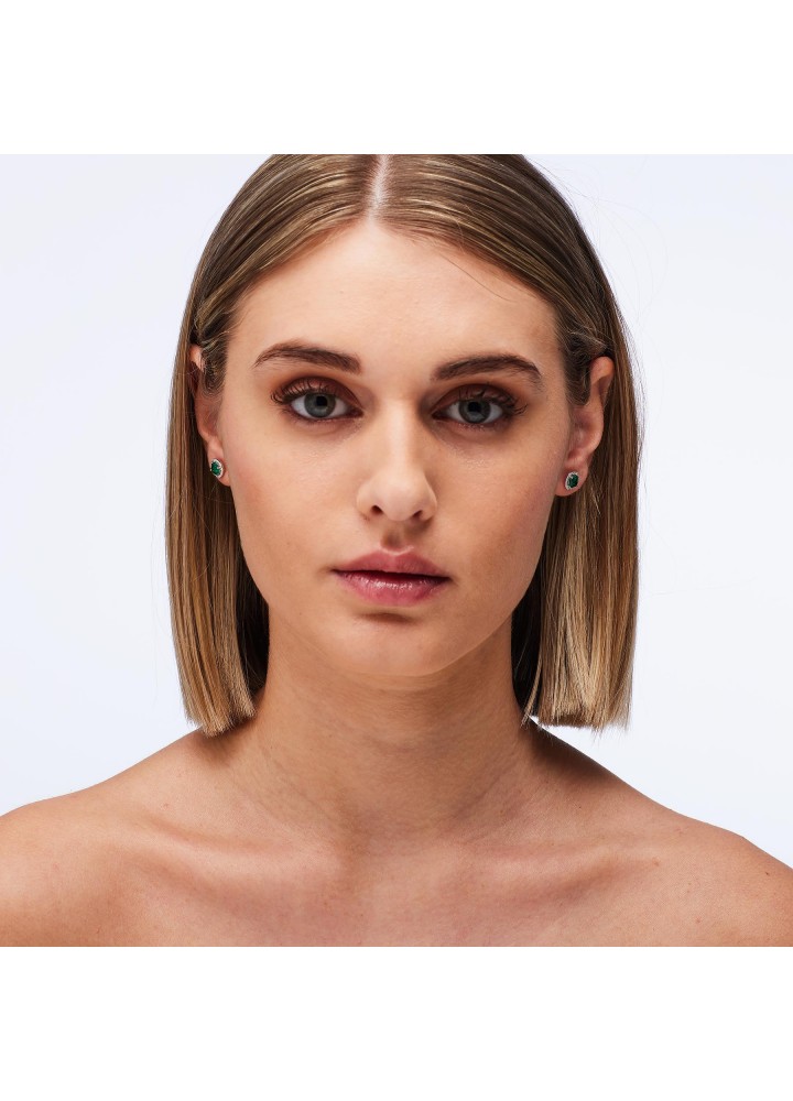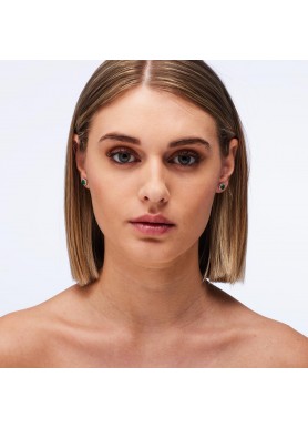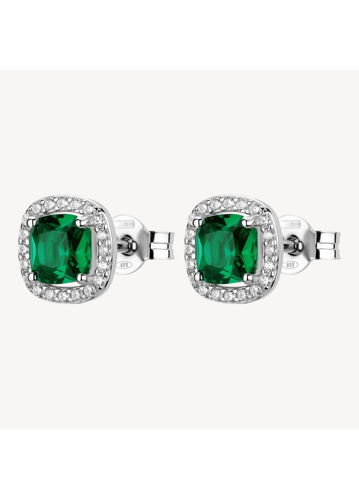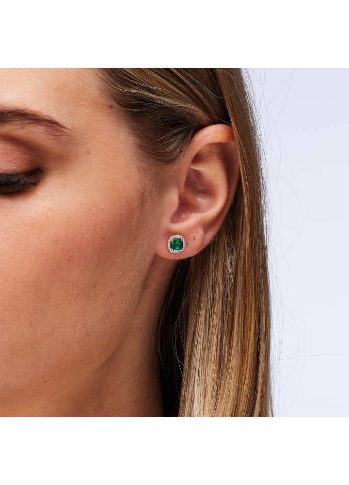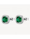 Orecchini a lobo in argento rodiato 925‰ con cubic zirconia chiari e cubic zirconia colore emerald.