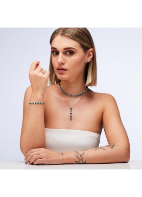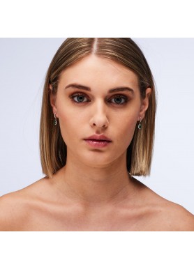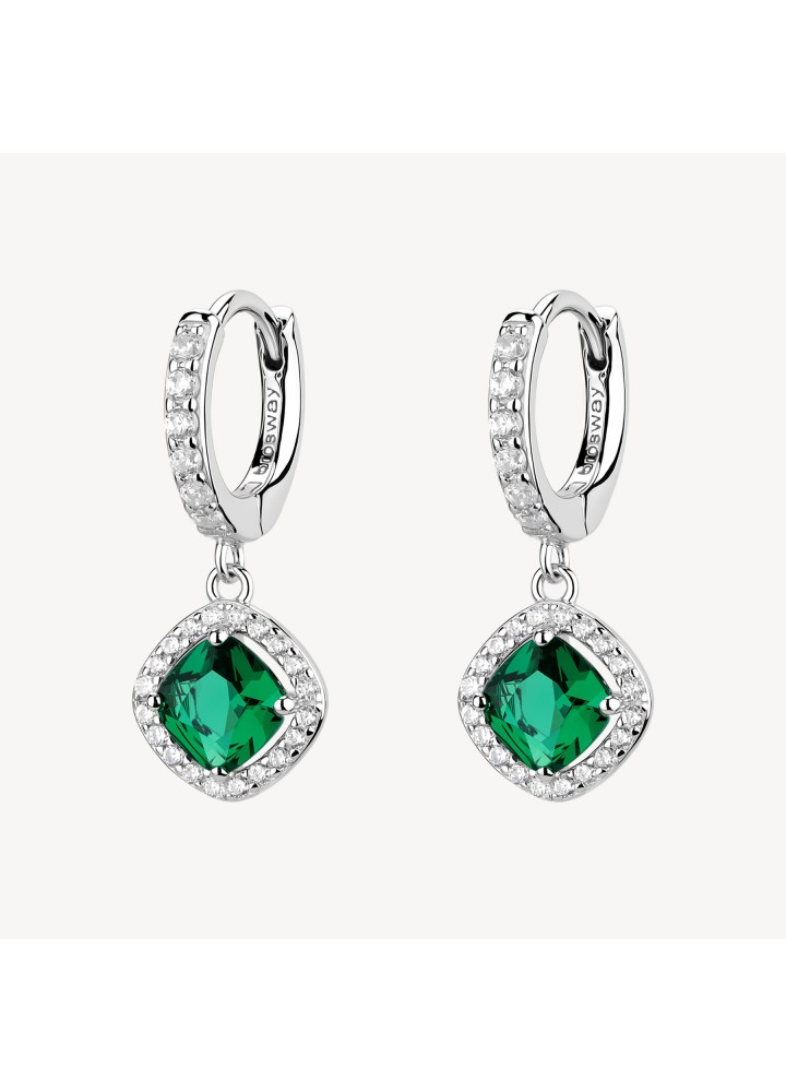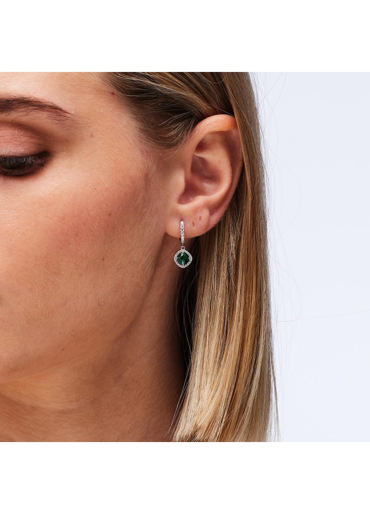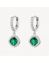 Orecchini a cerchio in argento rodiato 925‰ e pendenti con cubic zirconia e cubic zirconia colore emerald