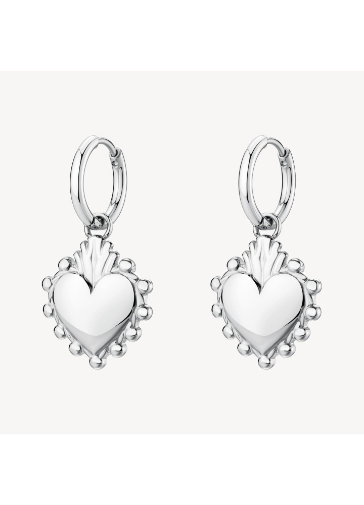 Orecchini a cerchietto in acciaio 316L con pendenti a forma di cuore.